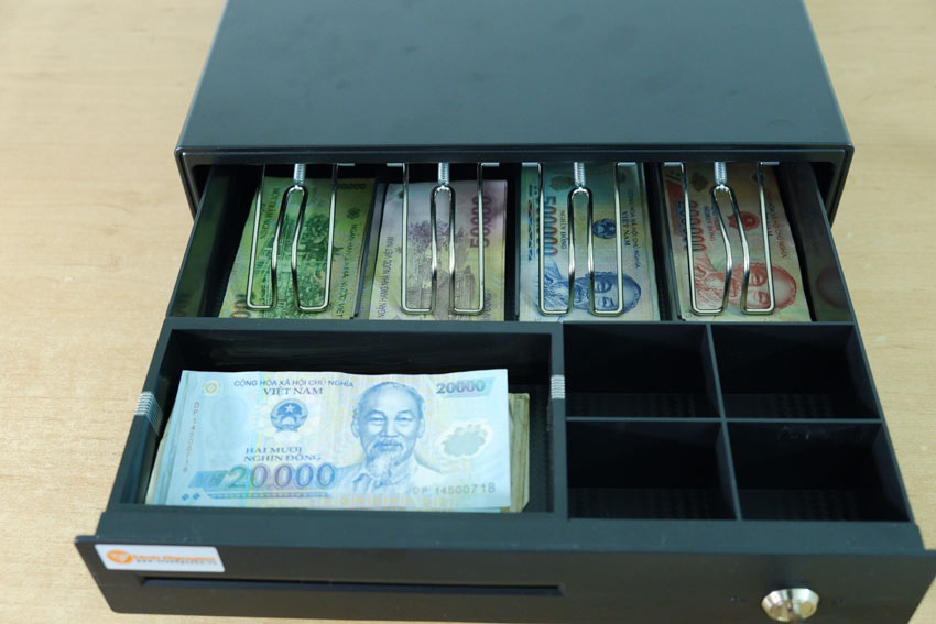 - 5 ngăn tiền giấy và 4 ngăn tiền xu (có thể tháo rời): có nhiều ngăn đựng tiền giấy, giúp doanh nghiệp chia nhỏ được các đơn vị tiền.